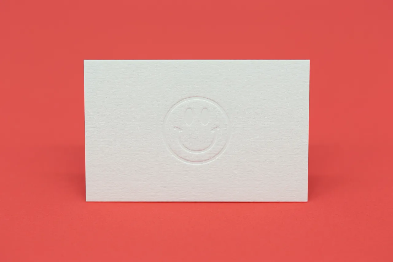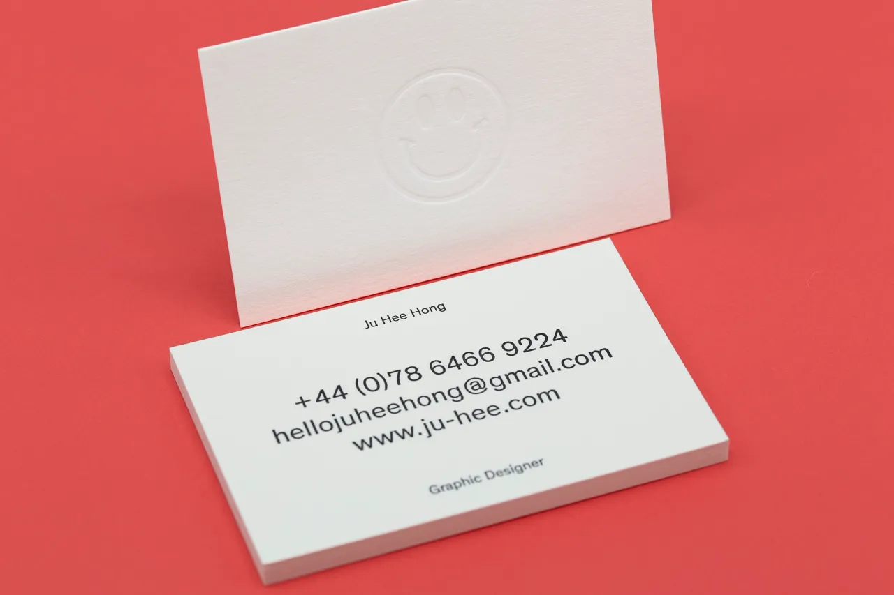 Blind debossed & letterpress printed business cards on thick white GF Smith Colorplan card stock