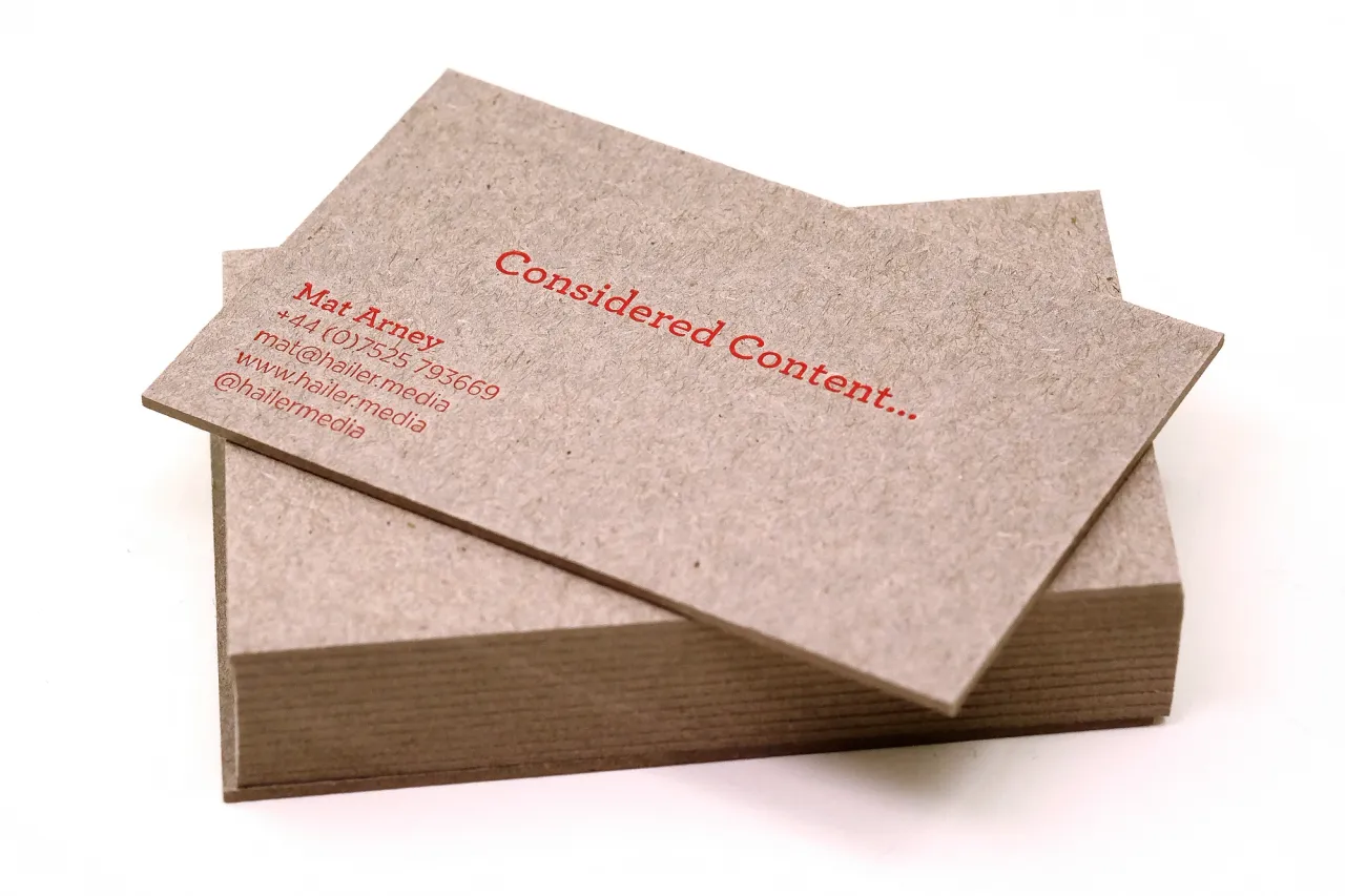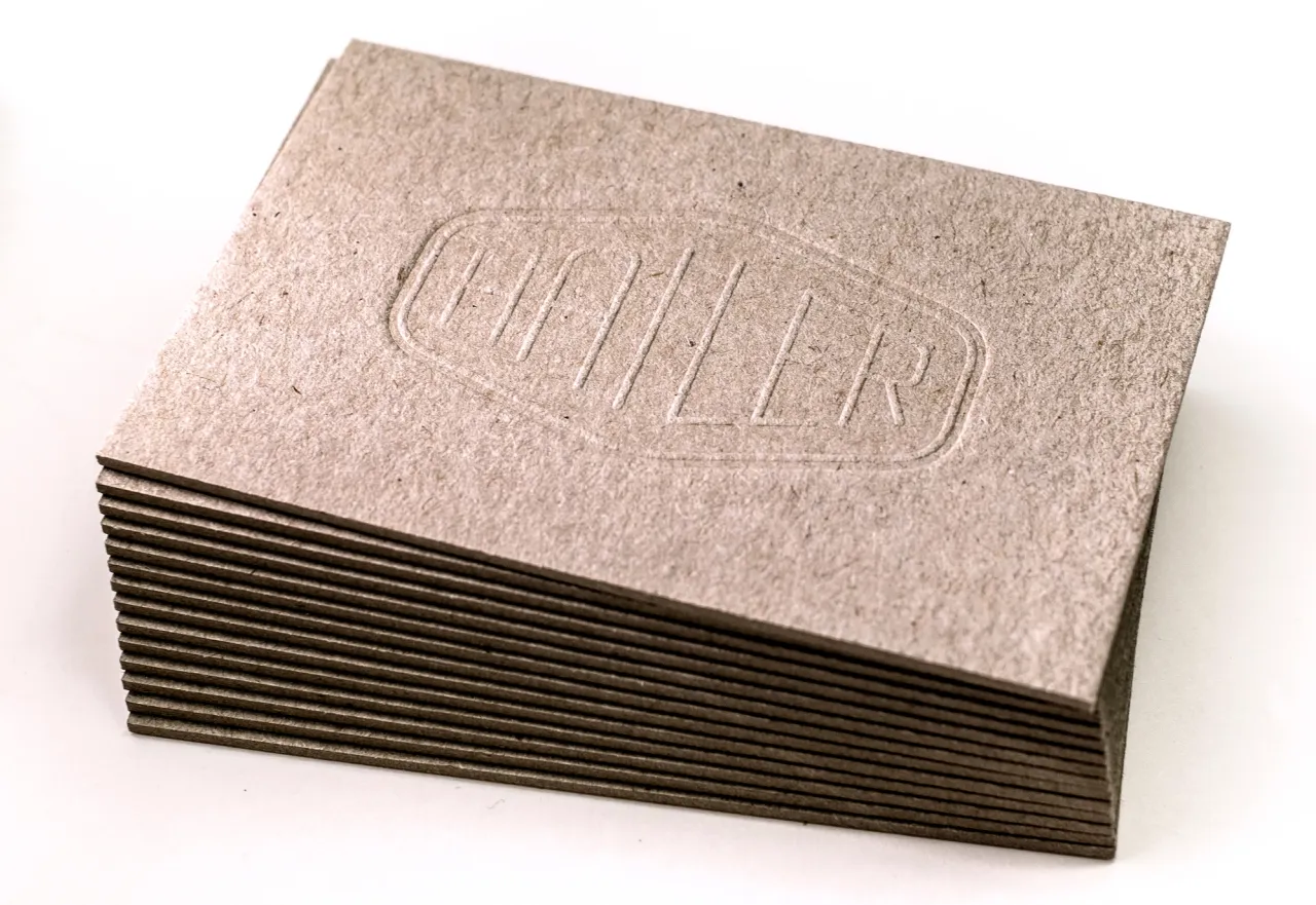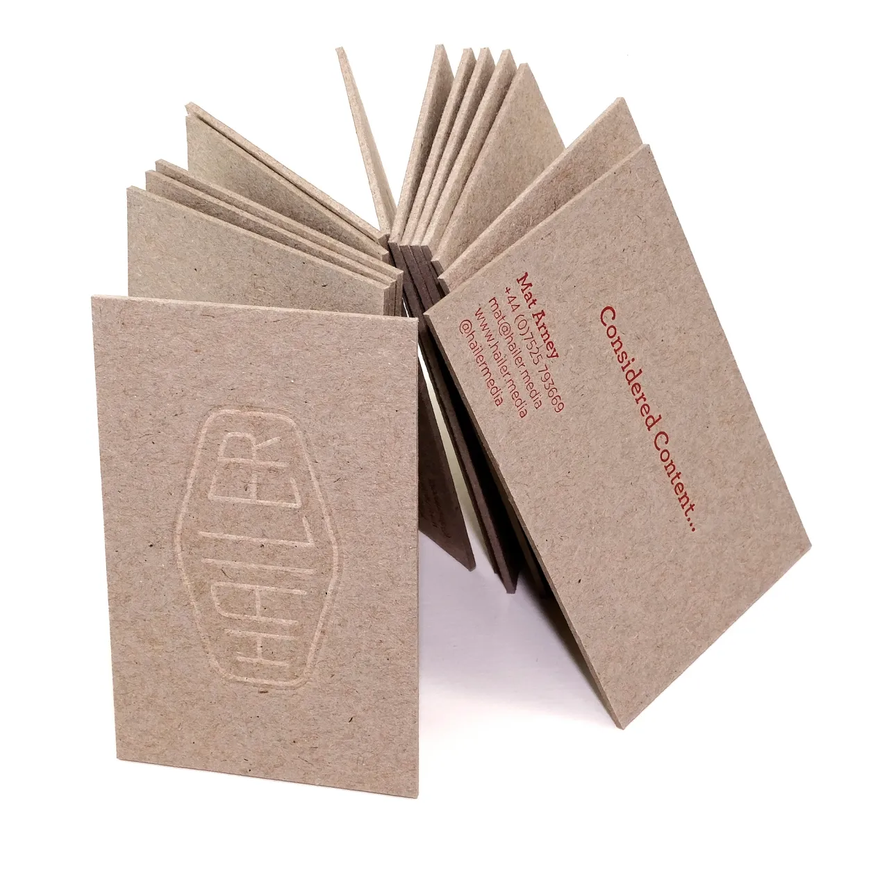 Blind debossed & letterpress printed business cards on heavyweight recycled greyboard