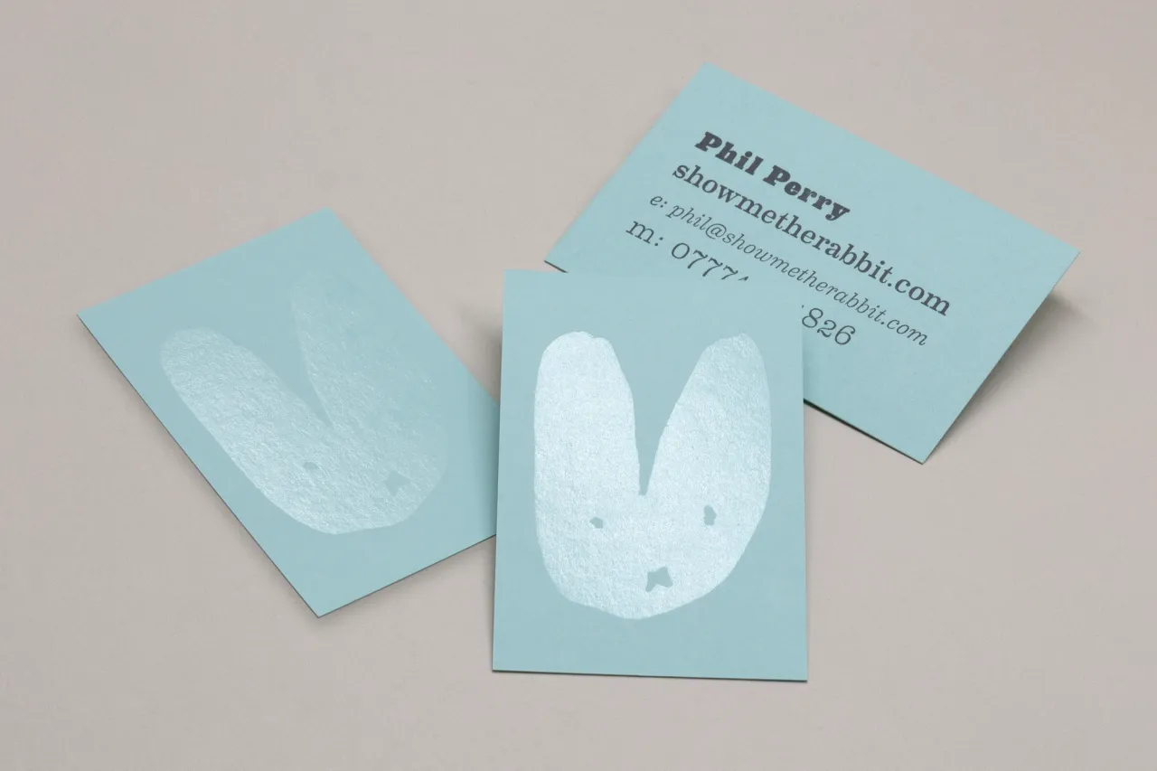 Letterpress printed in one colour & hot foil stamped in Foilco Transparent Satin foil on 380gsm Extract Aqua recycled card stock.