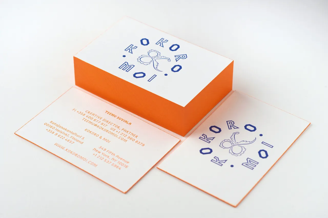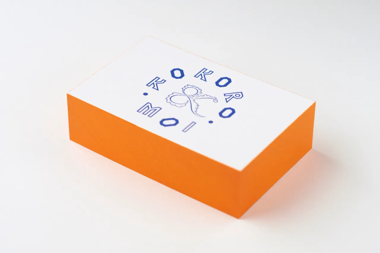 Edge painted letterpress business cards on Colorplan card stock for Kokoro & Moi