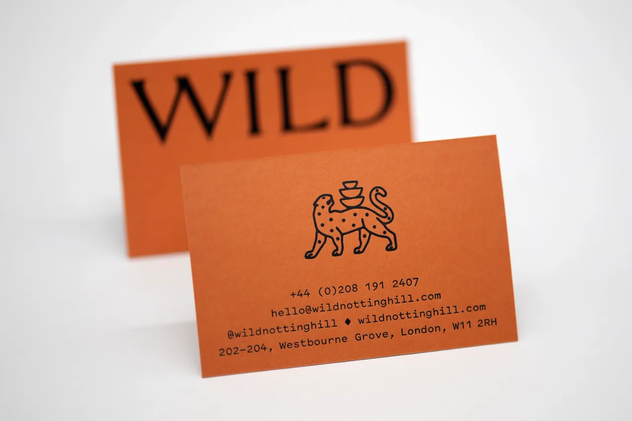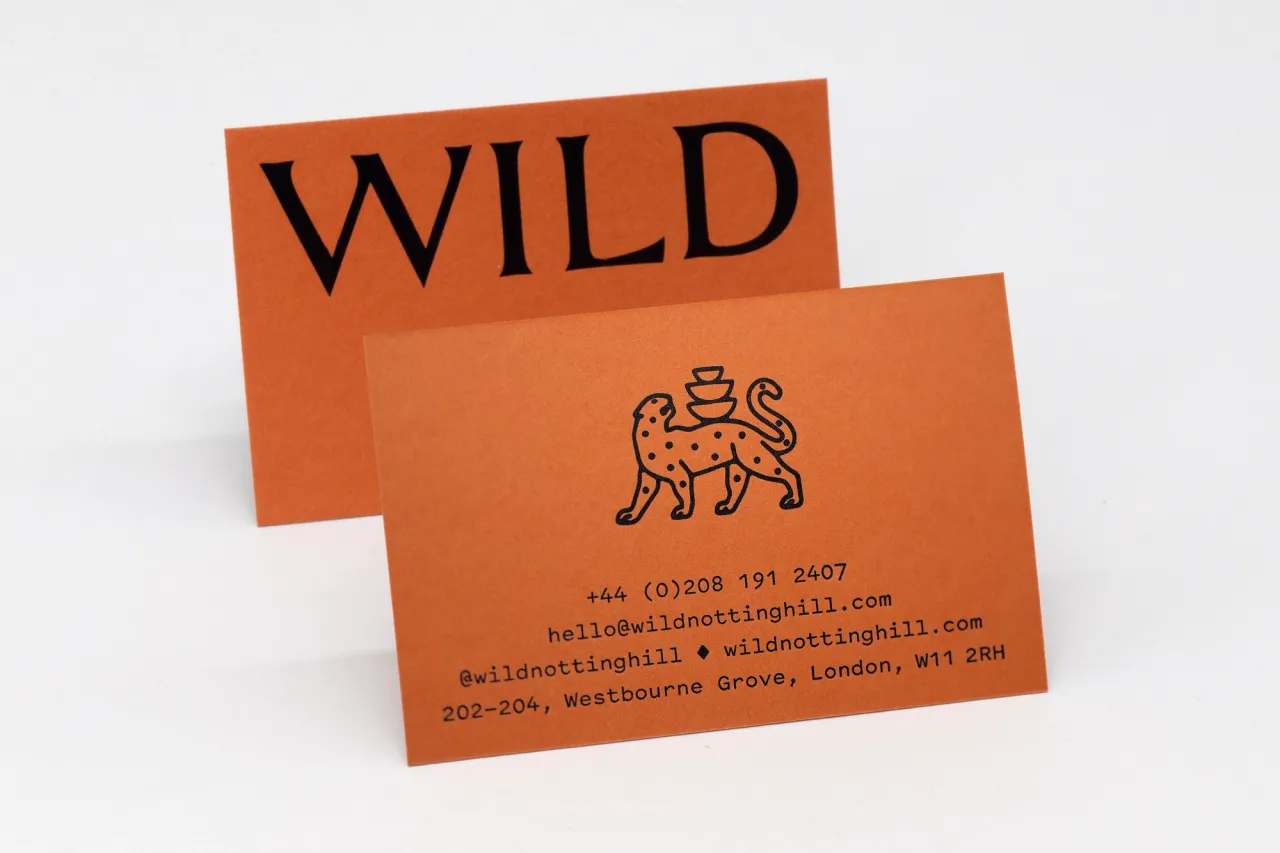 Gloss black foil stamped & letterpress printed business cards for Wild Notting Hill
