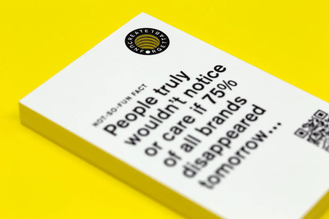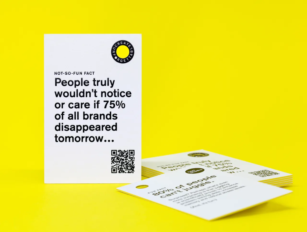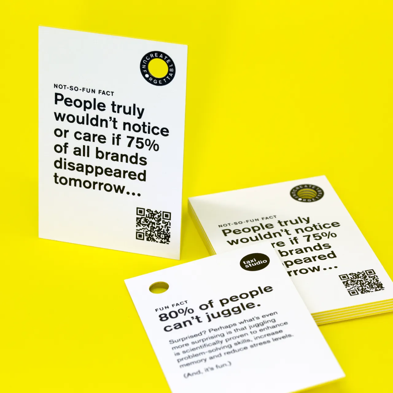 Hot foil stamped in gloss black to both sides on 890gsm triplexed Colorplan Pristine White/Factory Yellow/Pristine White card stock with a custom die-cut hole.