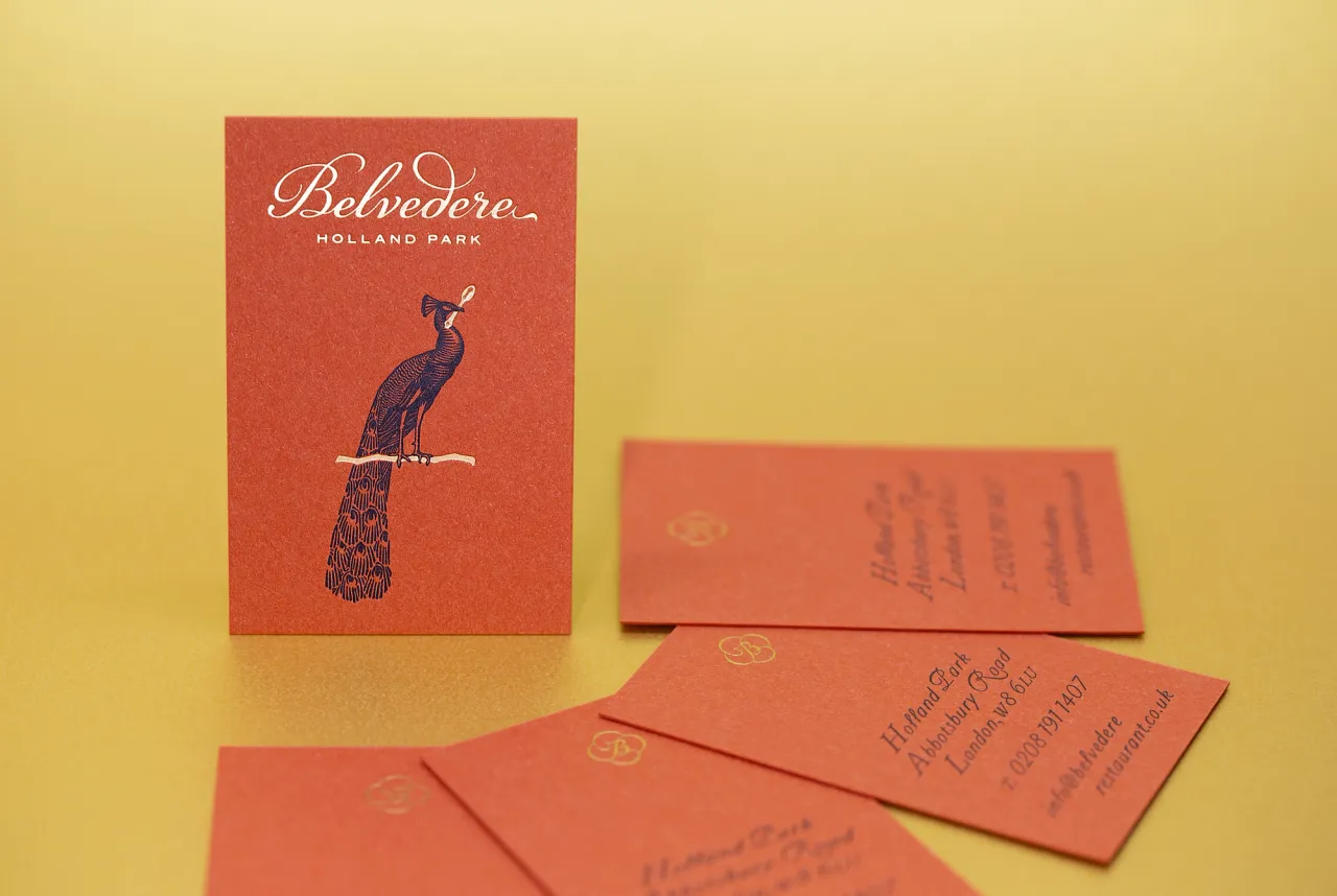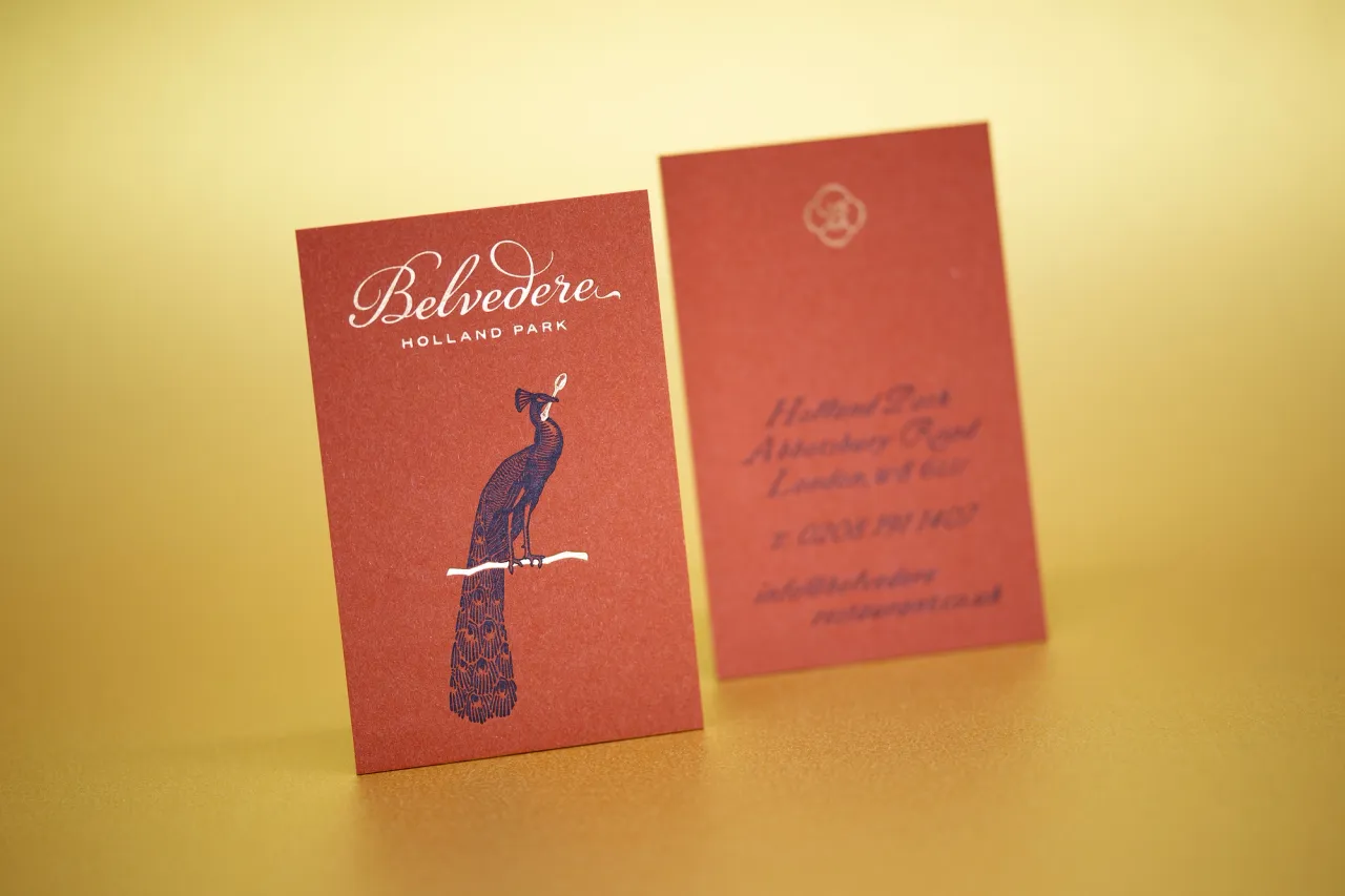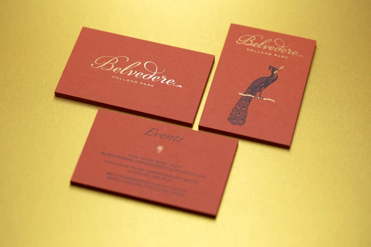 Gold hot foil stamped & letterpress printed business cards for the Belvedere Restaurant