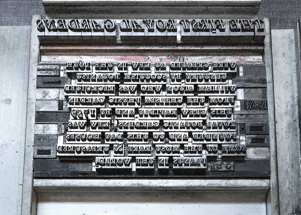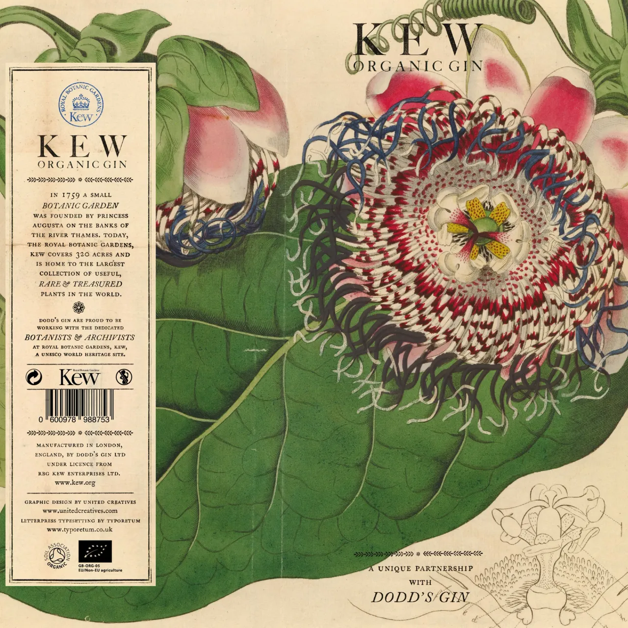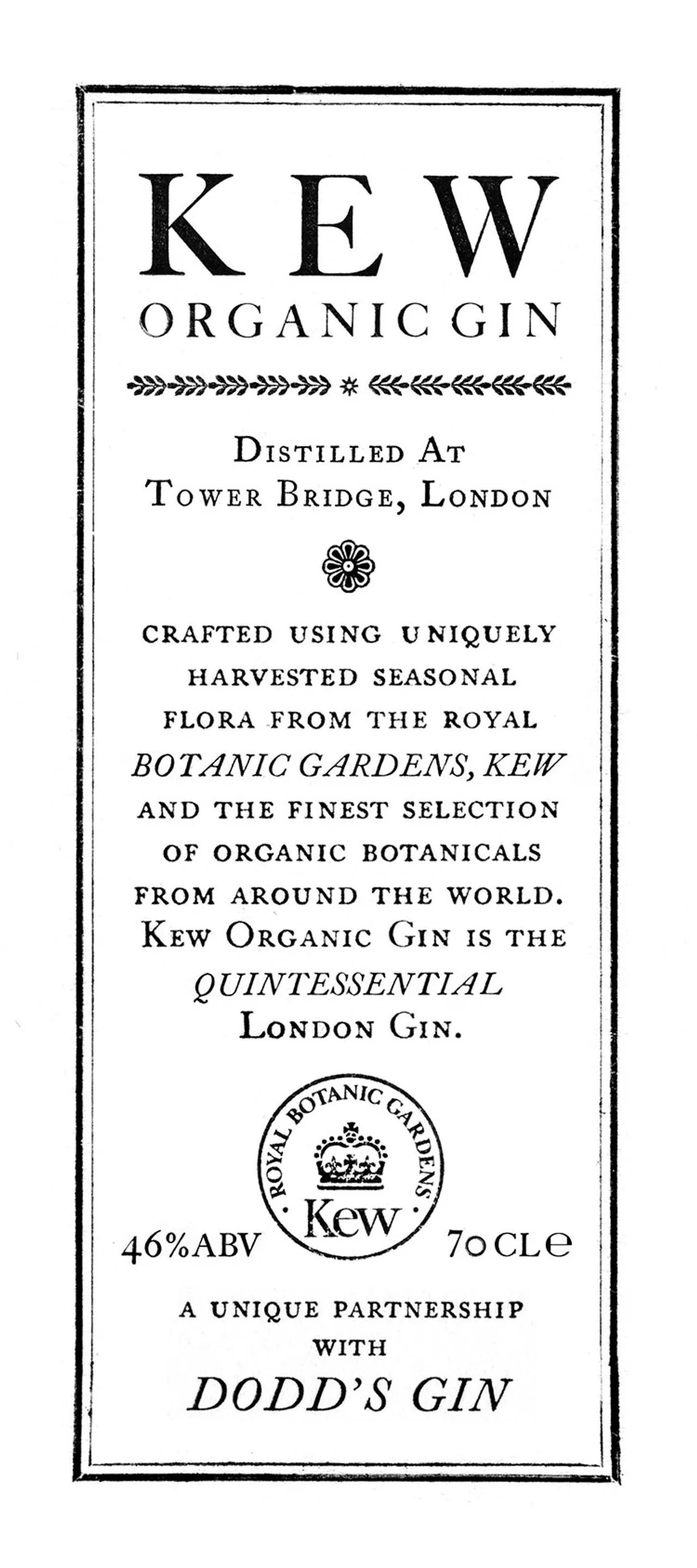We collaborated with United Creatives to design bottle labels and packaging for Kew Organic Gin, a new spirit distilled with botanicals from the Royal Botanic Gardens, Kew. Drawing on our library of vintage and antique metal Caslon type, we hand-typeset and printed artwork that formed the foundation of the final designs. The prints were proofed in a single colour on acid-free mould-made and cartridge papers.