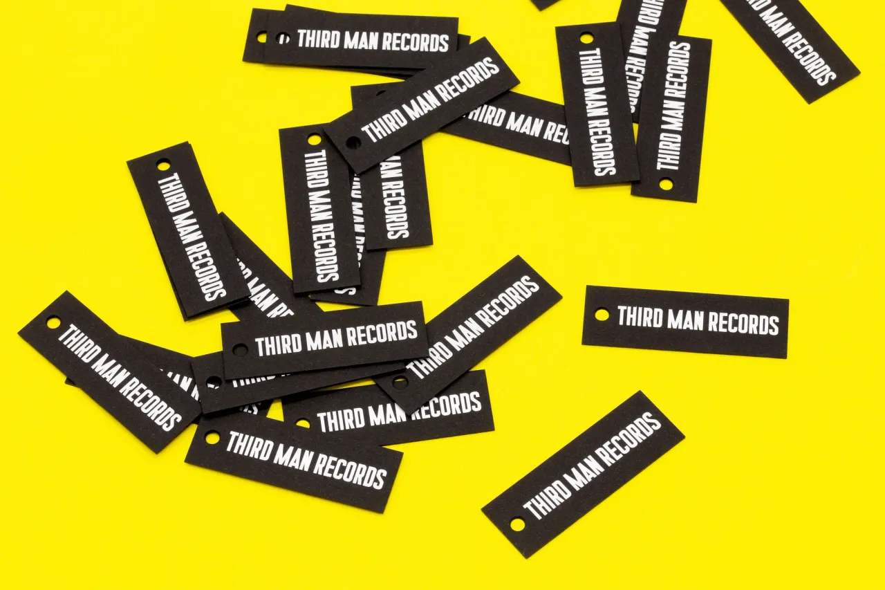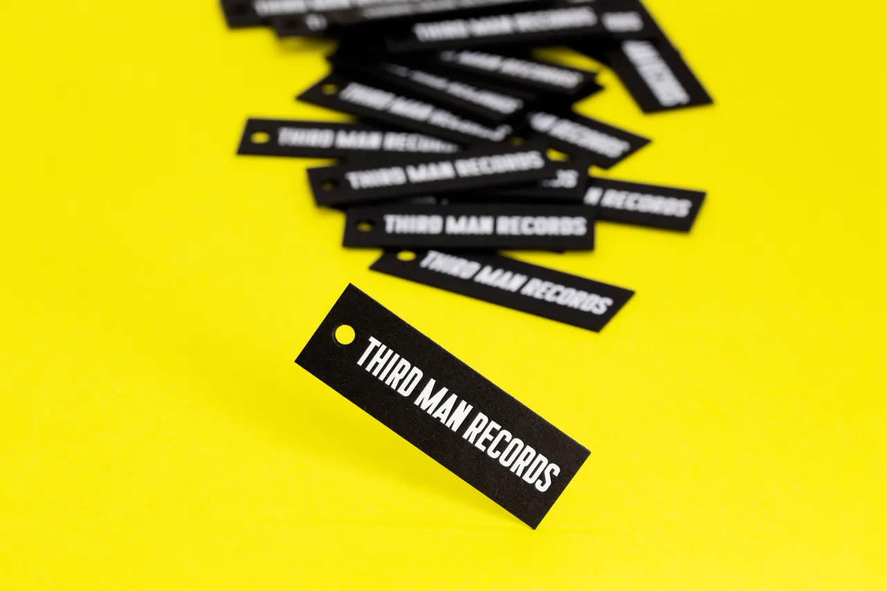 Hot foil stamped and die-cut merchandise tags for Third Man Records