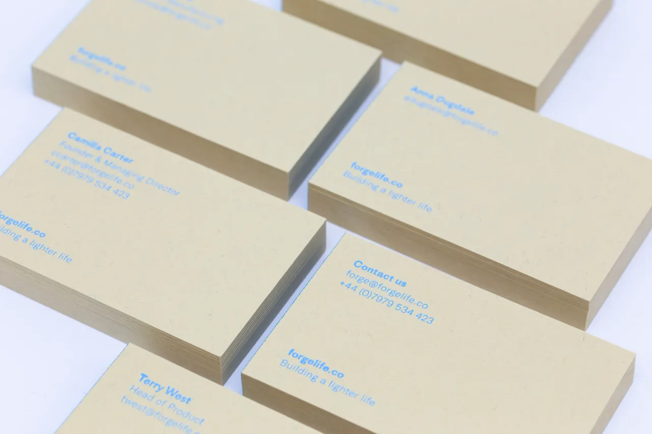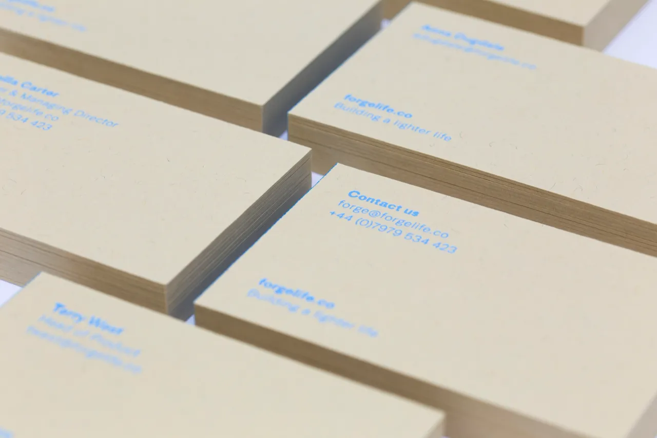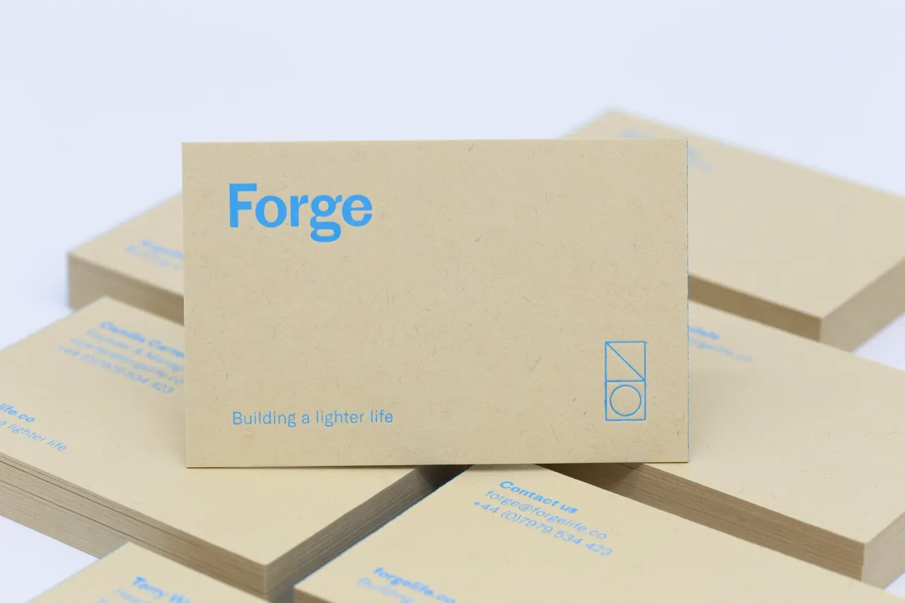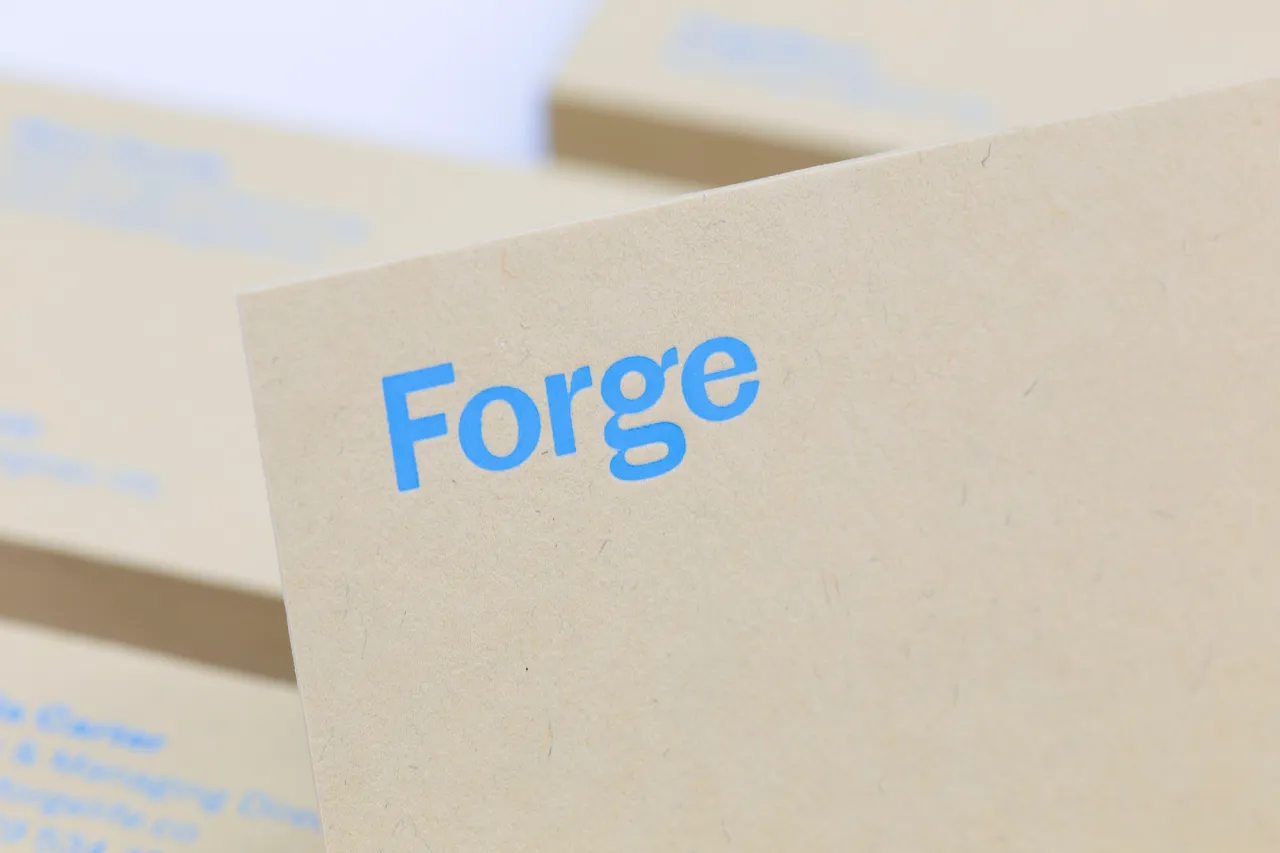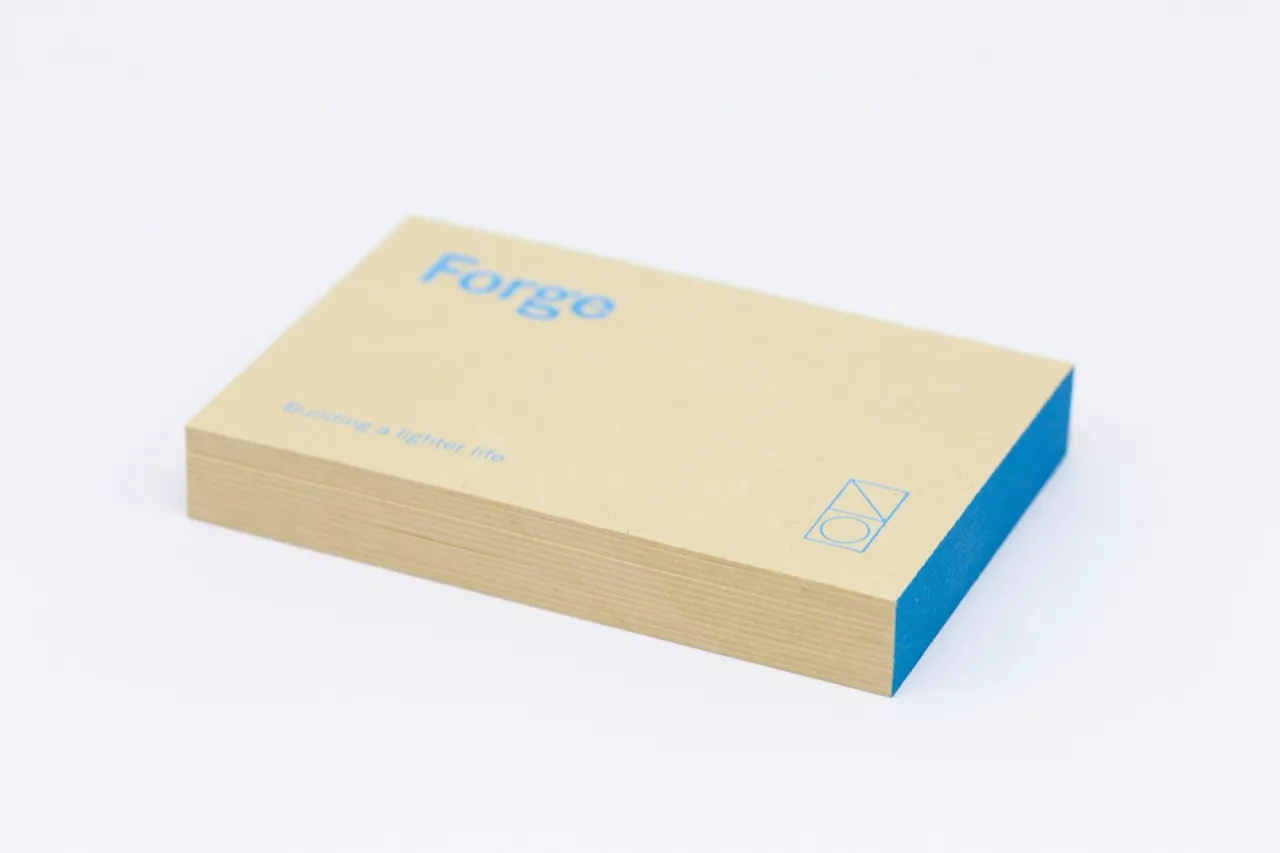 Hot foil stamped and edge painted business cards for Forge Living
