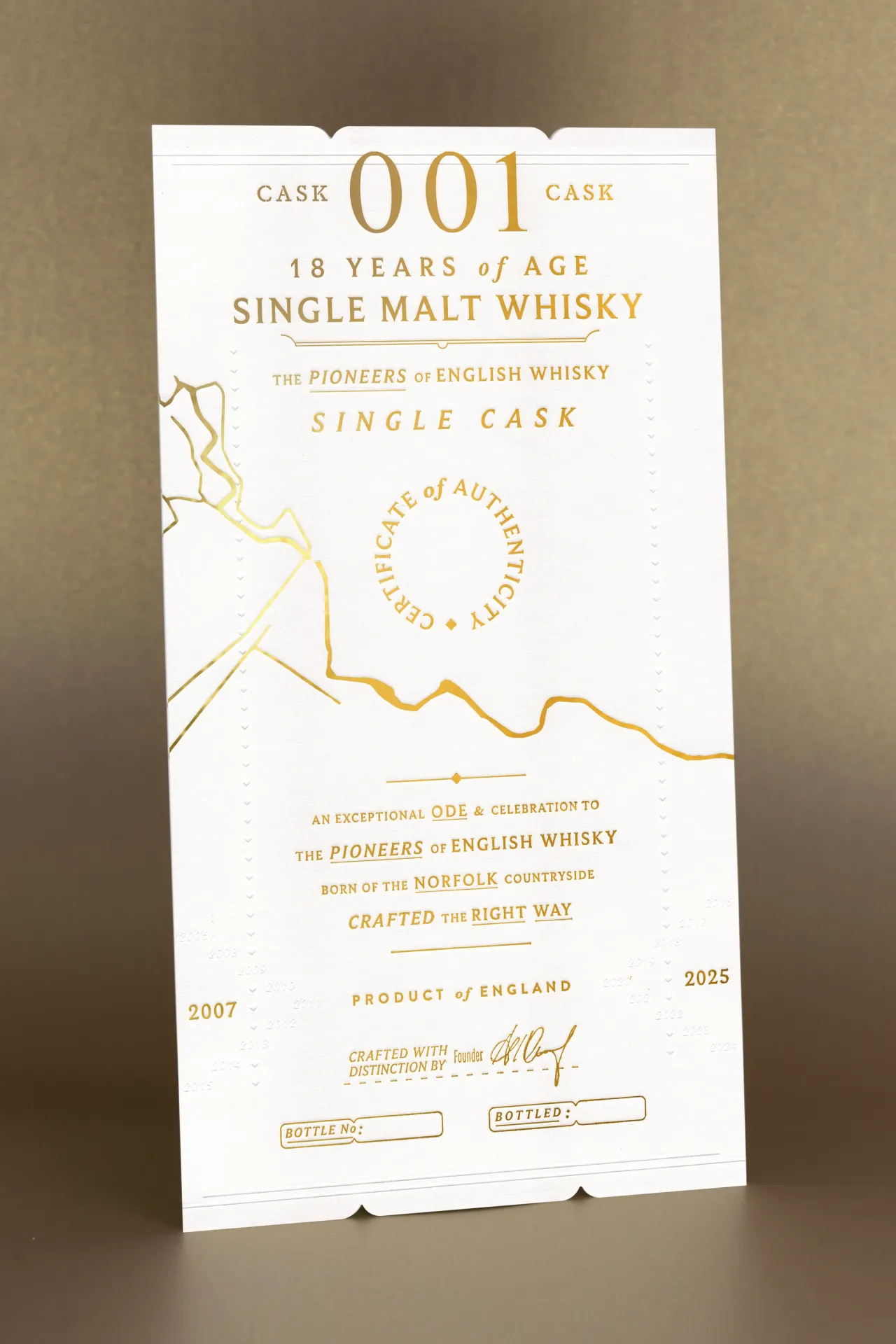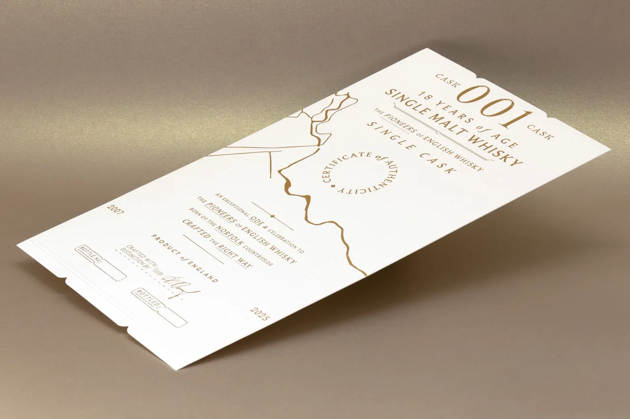Hot foil stamped, blind embossed & custom die-cut limited edition whisky certificates on cotton card stock