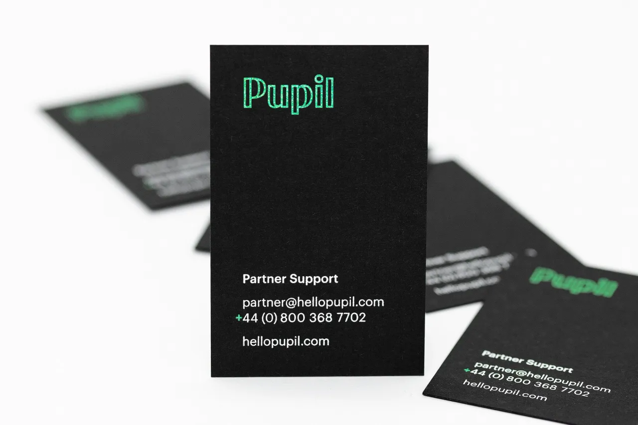 Hot foil stamped business cards on thick Colorplan Ebony card stock