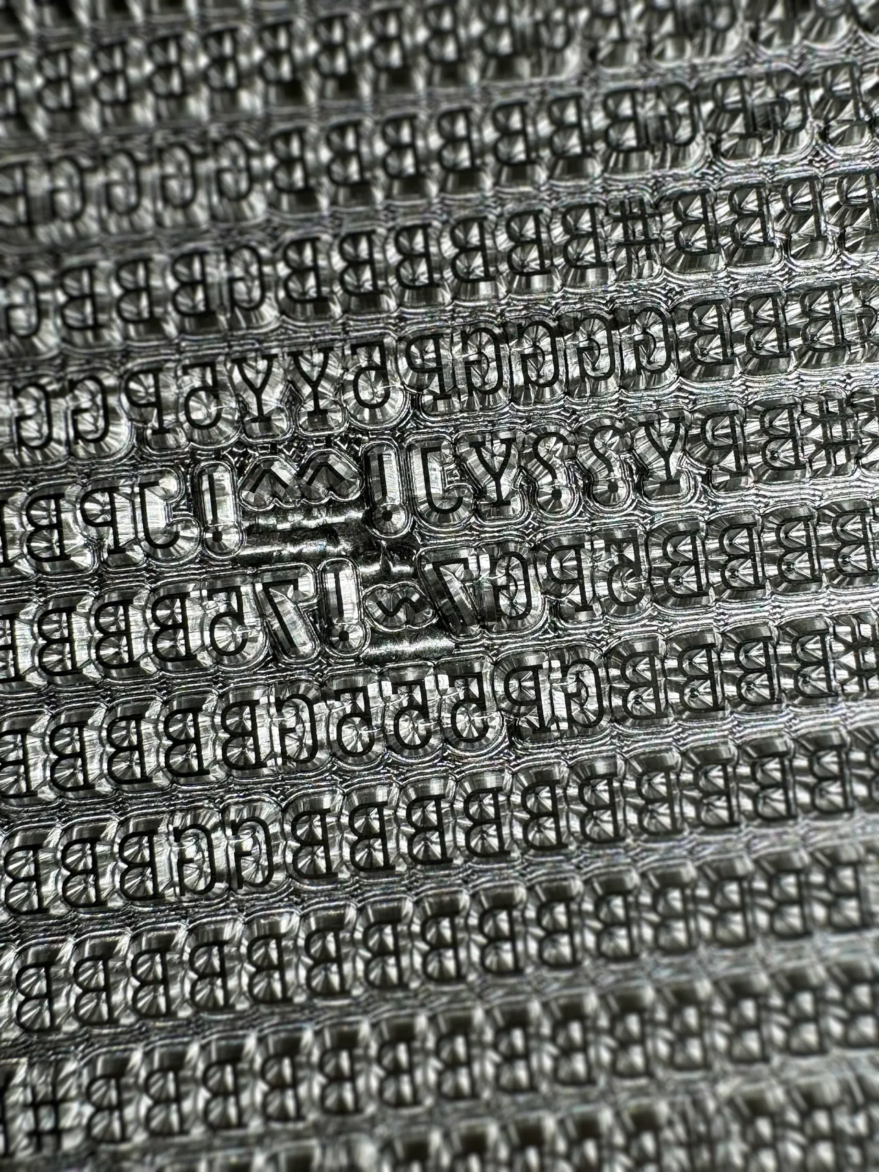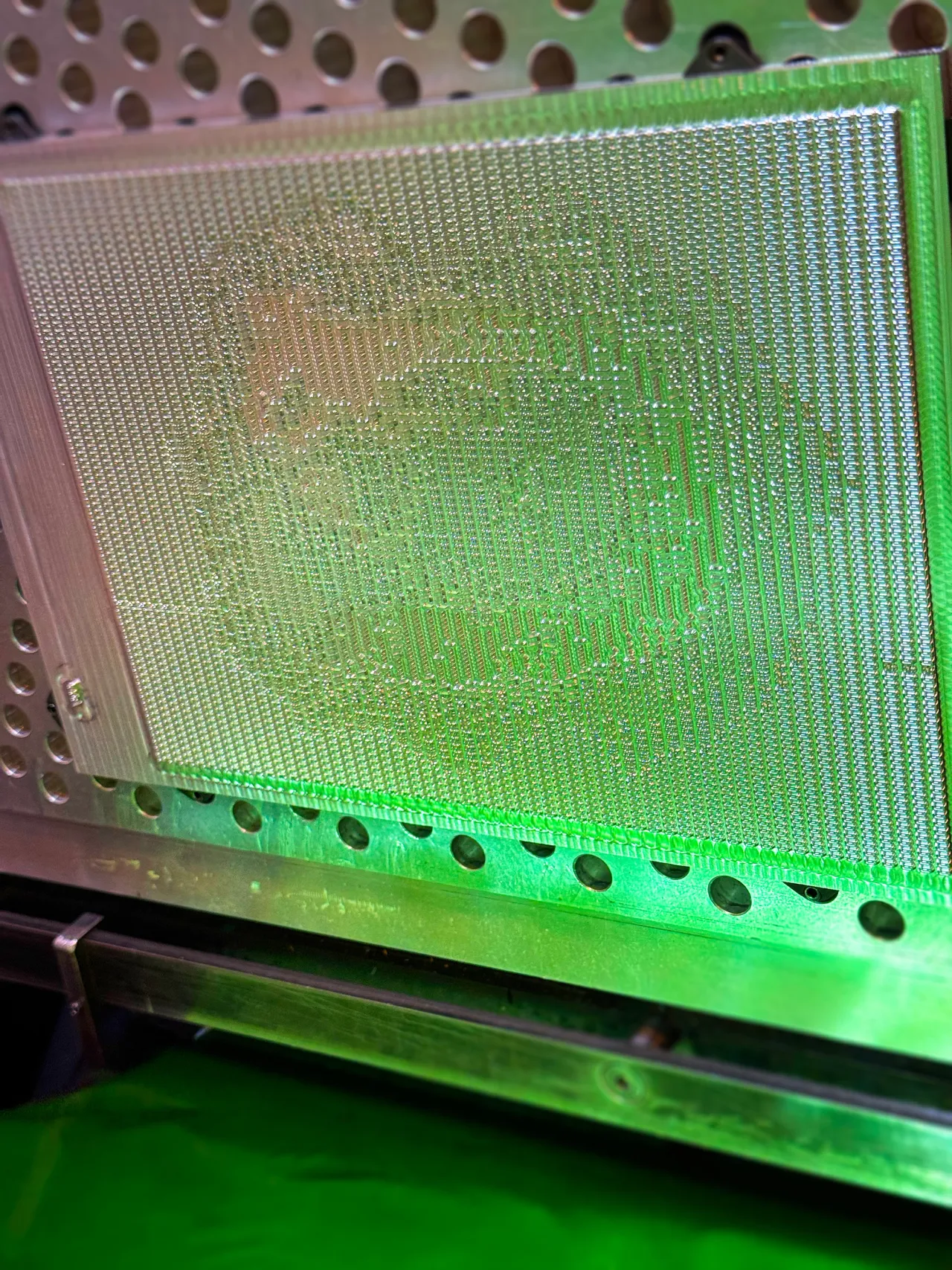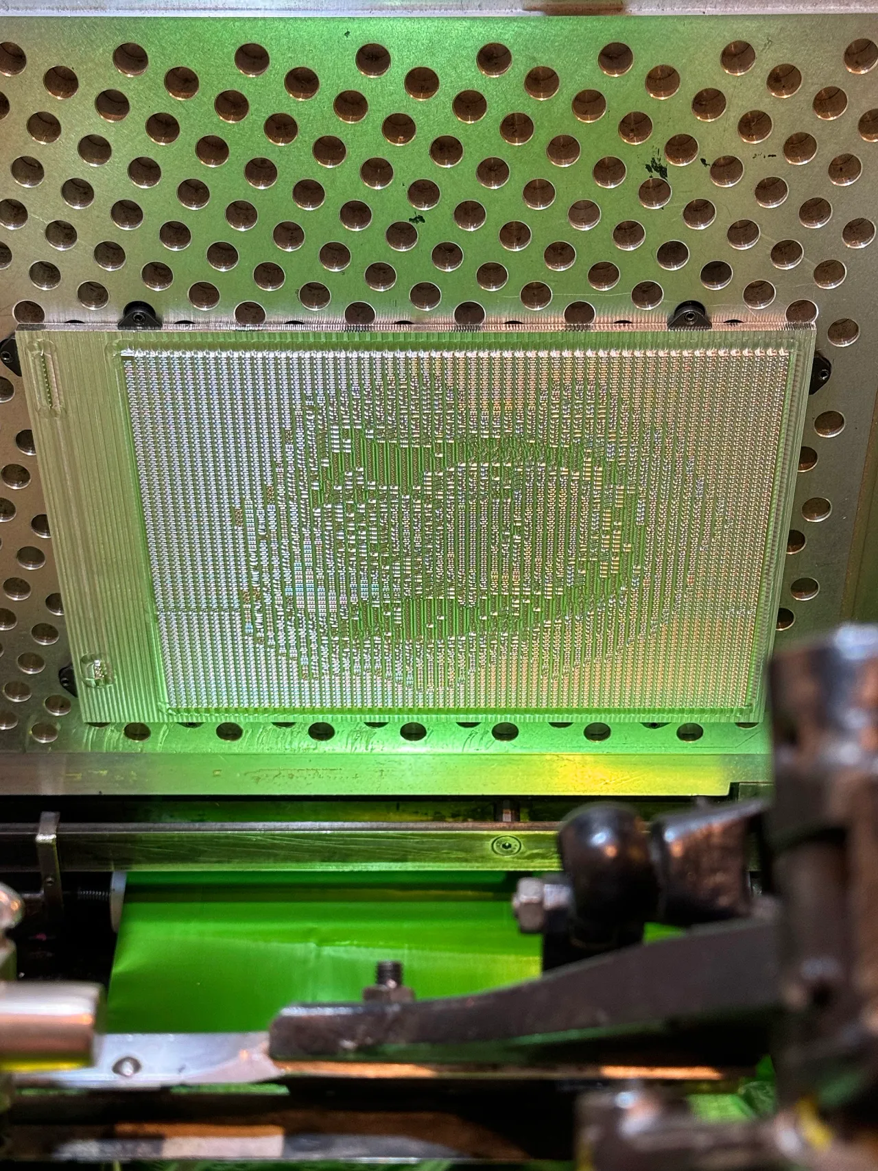 Hot foil stamped in Foilco Peridot Green foil onto 310gsm Gmund Urban Cement Black card stock.
