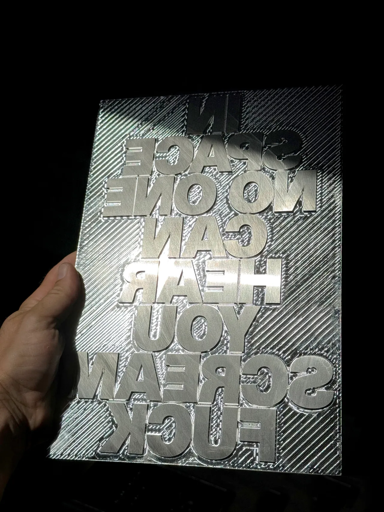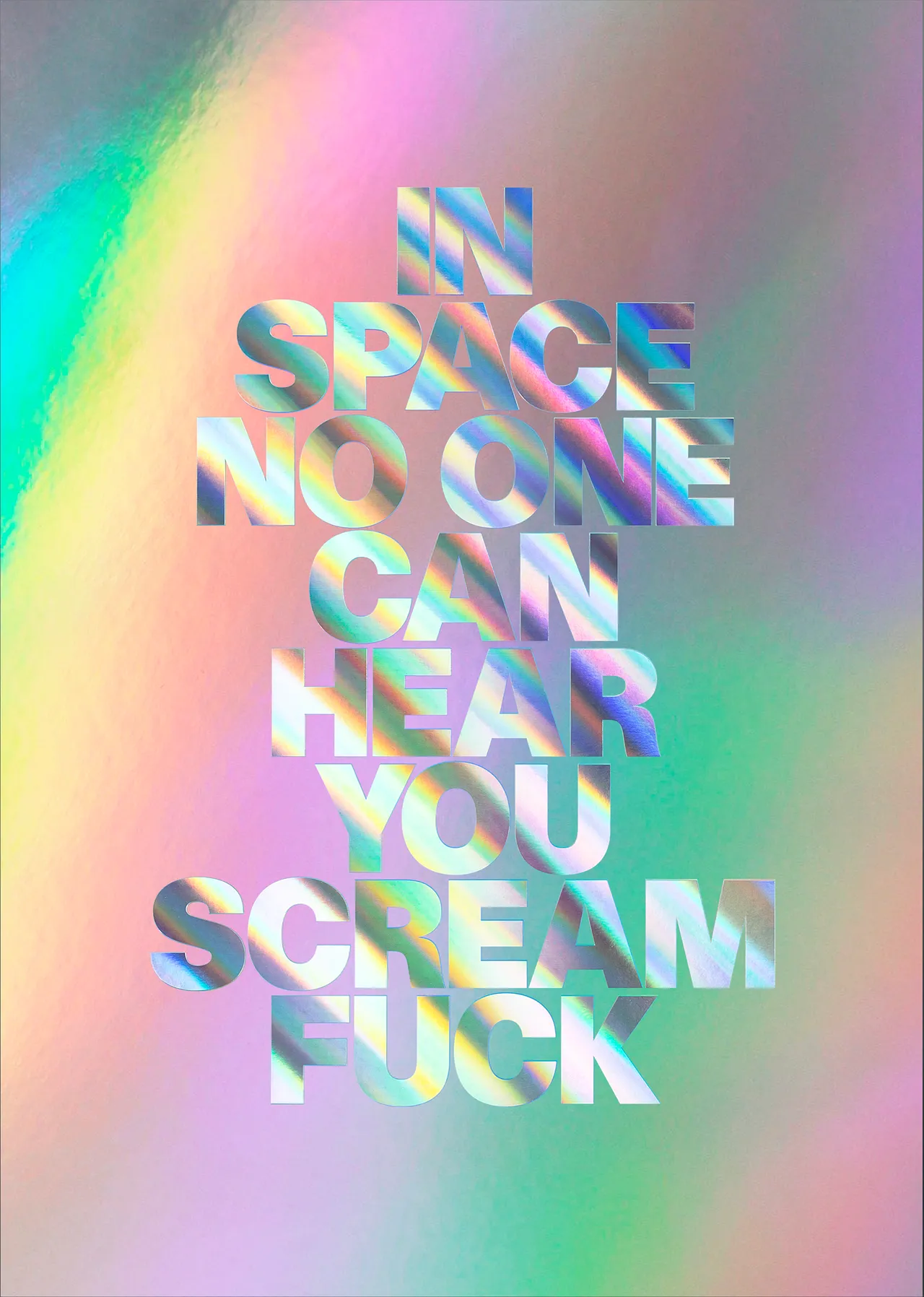 ‘In Space No One Can Hear You’ limited edition hot foiled holographic print on Mirri board for Grow Up Art