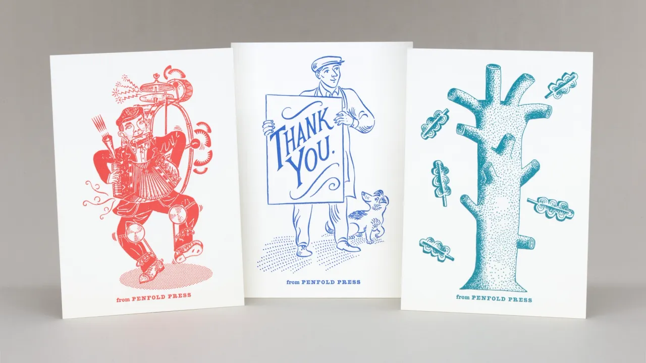 Letterpress printed postcards for Penfold Press, with illustration by Emily Sutton