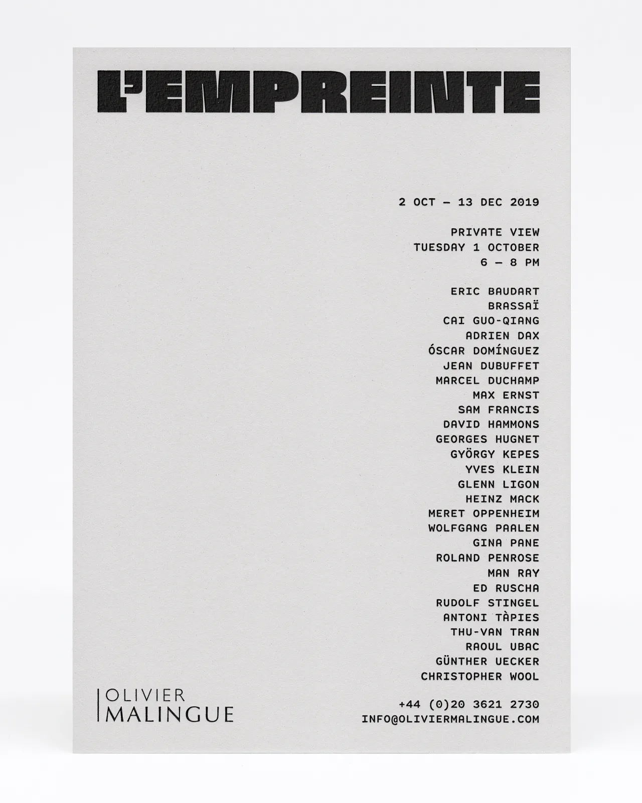 Letterpress printed Private View invitations on heavyweight Colorplan card stock