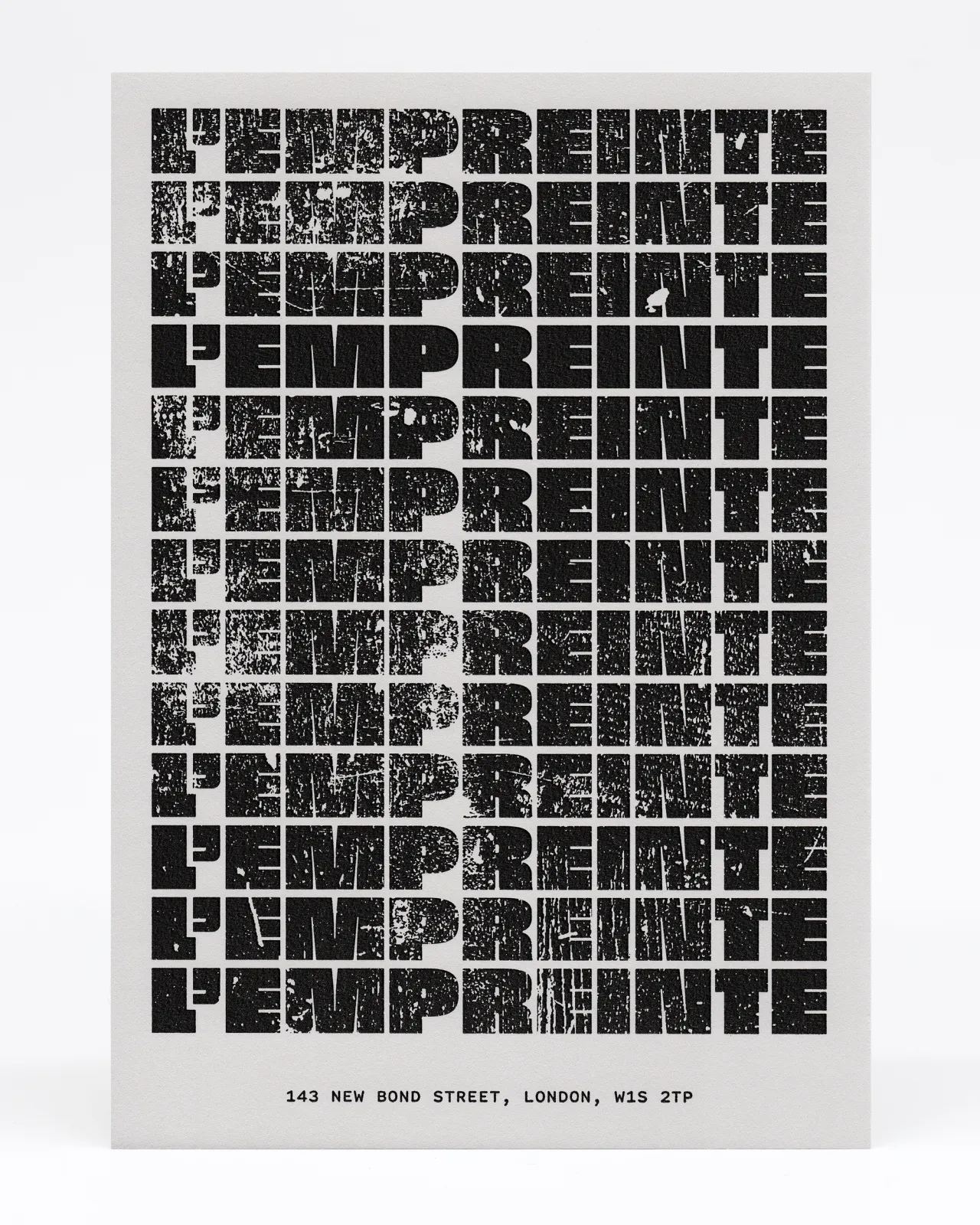 Letterpress printed in black ink with a deep deboss to both sides of 1,080gsm Colorplan Pale Grey card stock.