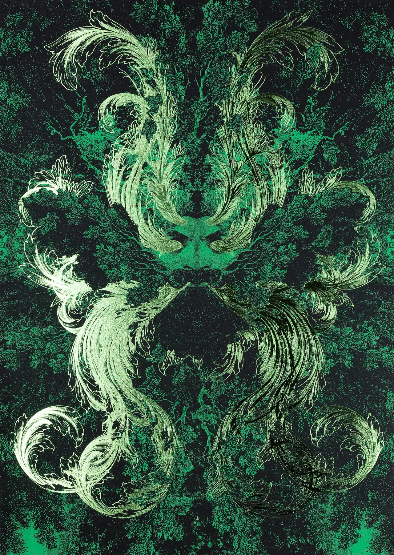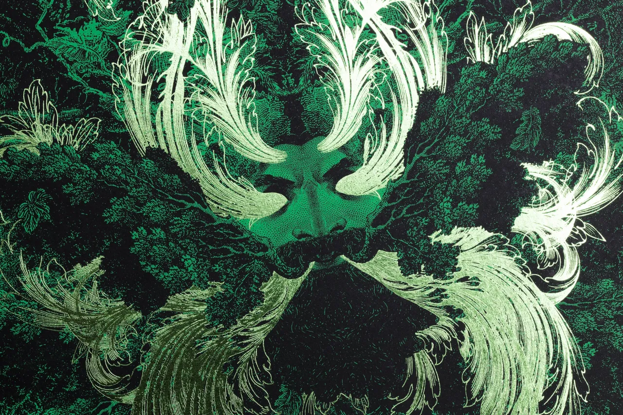 Limited edition letterpress printed & metallic green hot foil stamped ‘Green Man’ prints for Dan Hillier