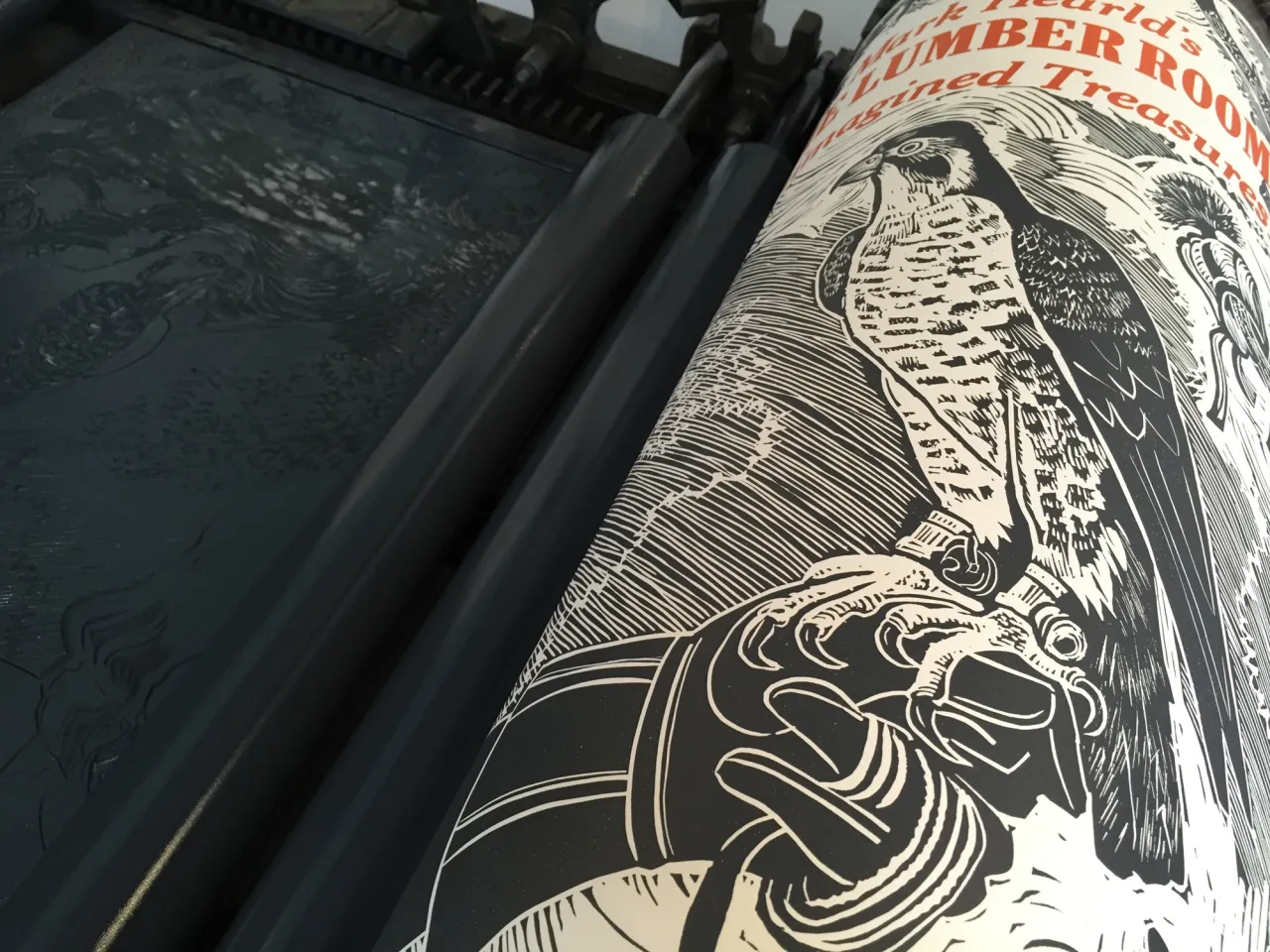 Limited edition two-colour linocut & wood type prints for Mark Hearld’s curated exhibition ‘The Lumber Room: Unimagined Treasures’