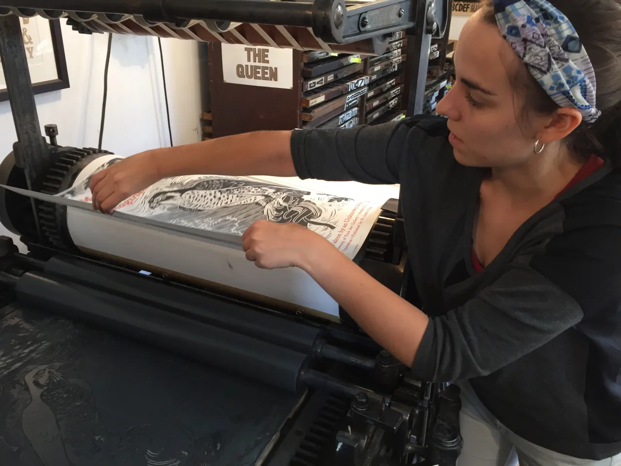 A limited edition, printed directly from Mark Hearld's original linocut and hand-typeset wood and metal type in two colours on 160gsm Lambeth Drawing Cartridge paper.