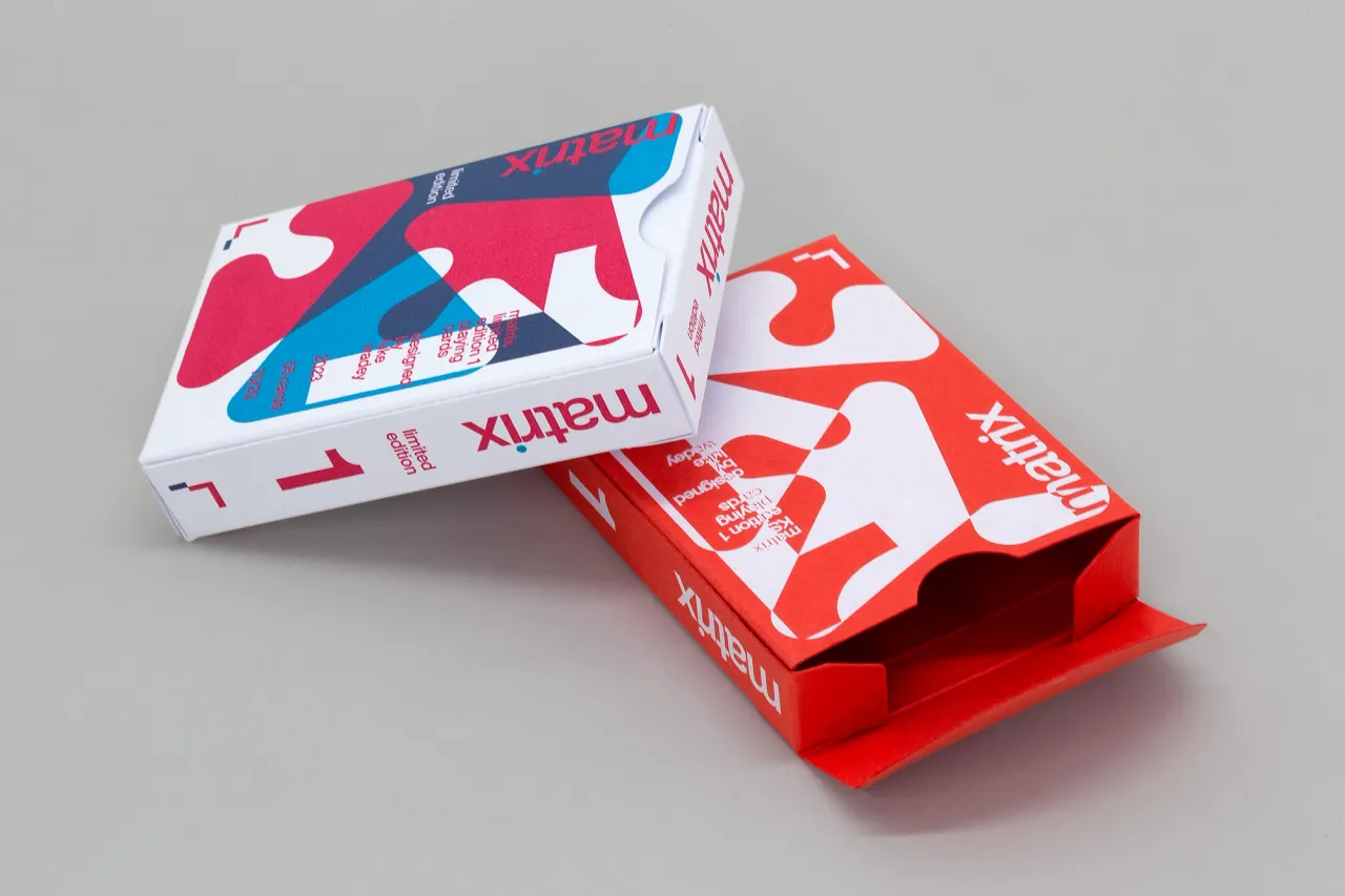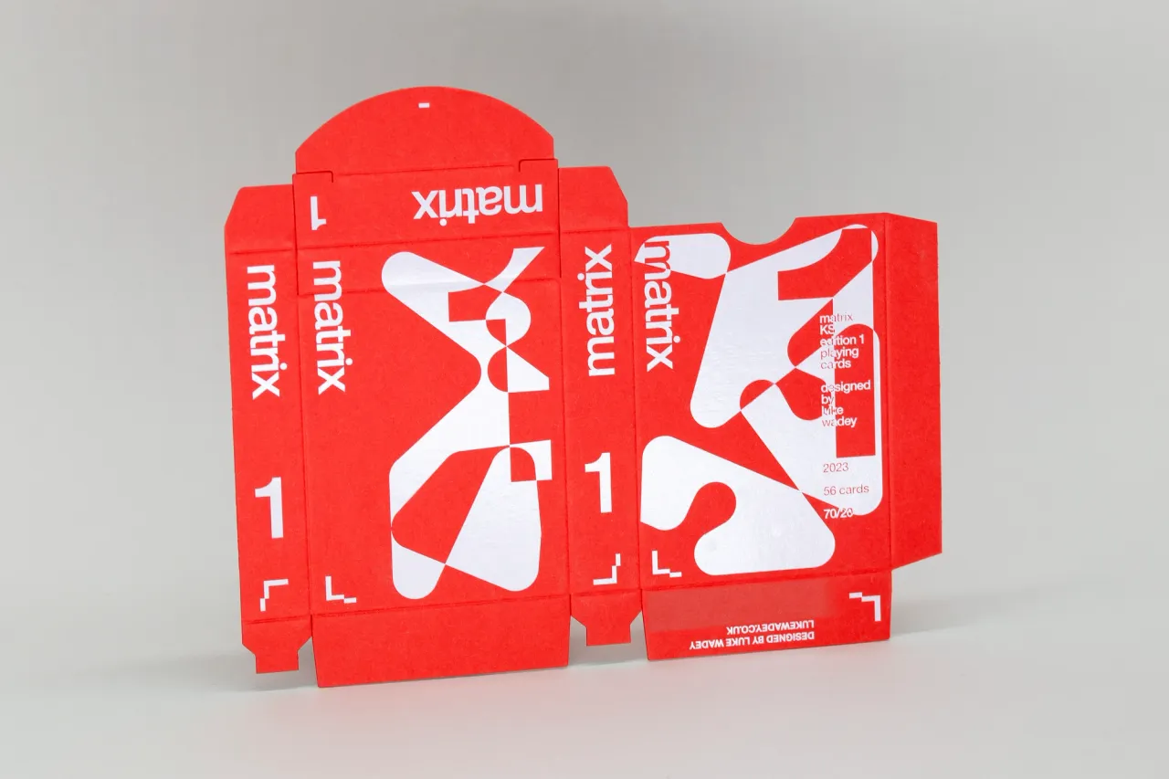 Two special edition die-cut playing card boxes that required letterpress printing in two colours on 300gsm Gmund Cotton card stock and hot foil stamping in white pigment foil on 380gsm Extract Coral card stock.