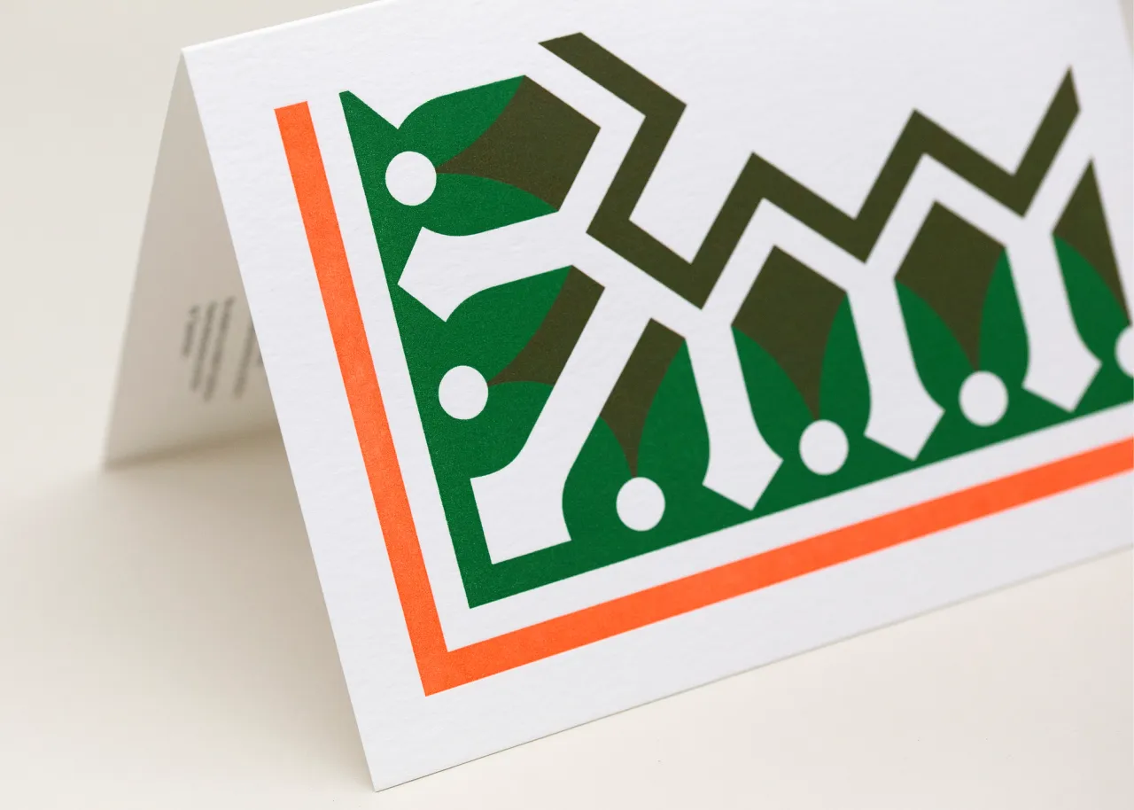 Letterpress printed in three colours onto GFSmith Wild White 300gsm.