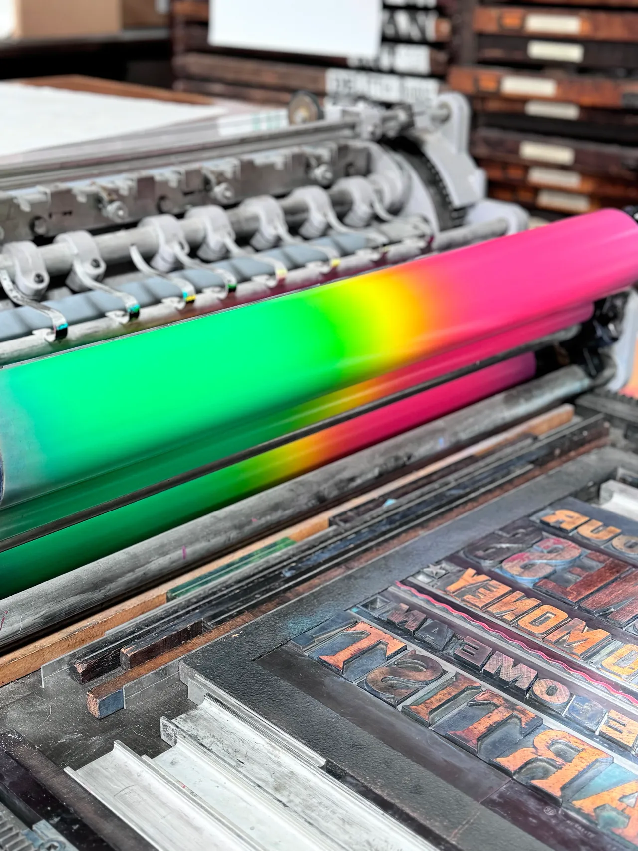 Collaboration with Mr Bingo to create a limited edition wood type print in two colourways. Printed by hand on a 1950s Soldans proofing press, onto 270gsm Colorplan Bright White paper stock.